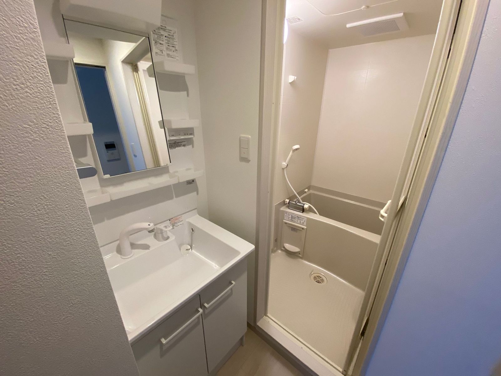お風呂場と別に独立洗面台がついてます!
