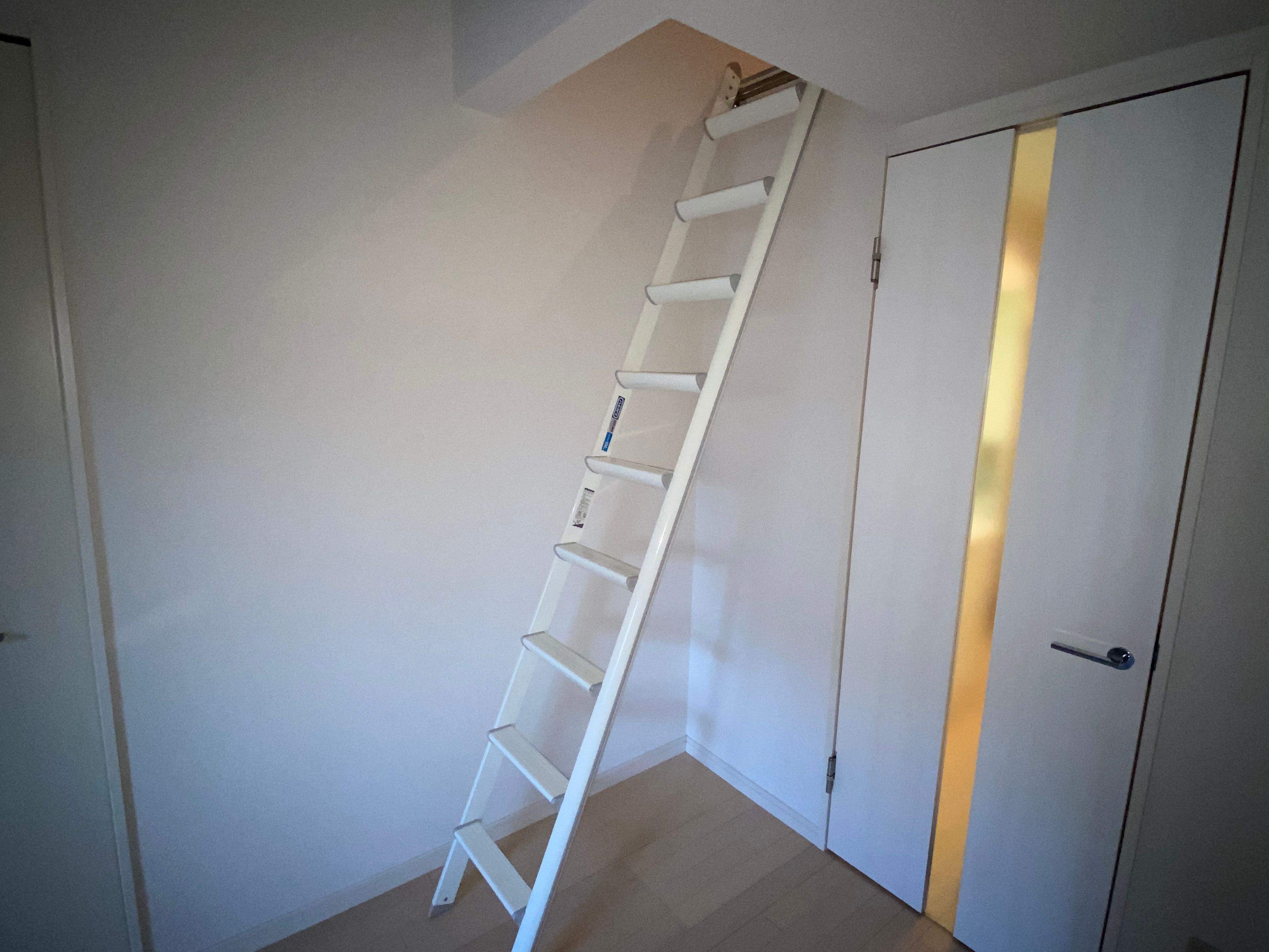 ロフトに上がるための階段が設置されています。