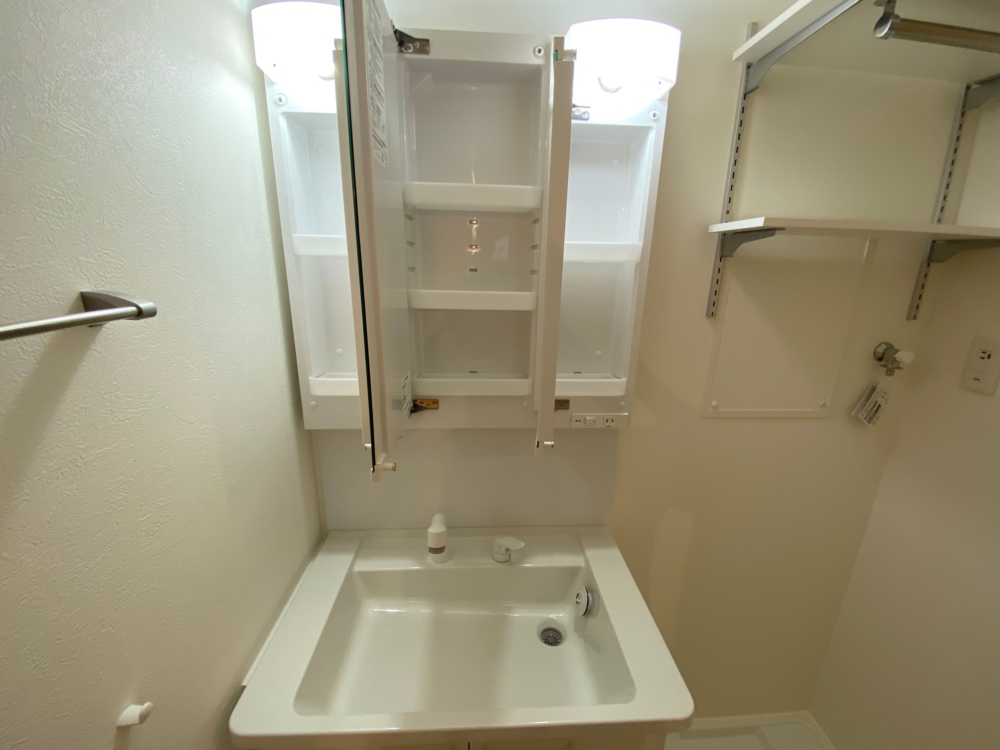 もちろん独立洗面台で洗濯機置き場の上にも